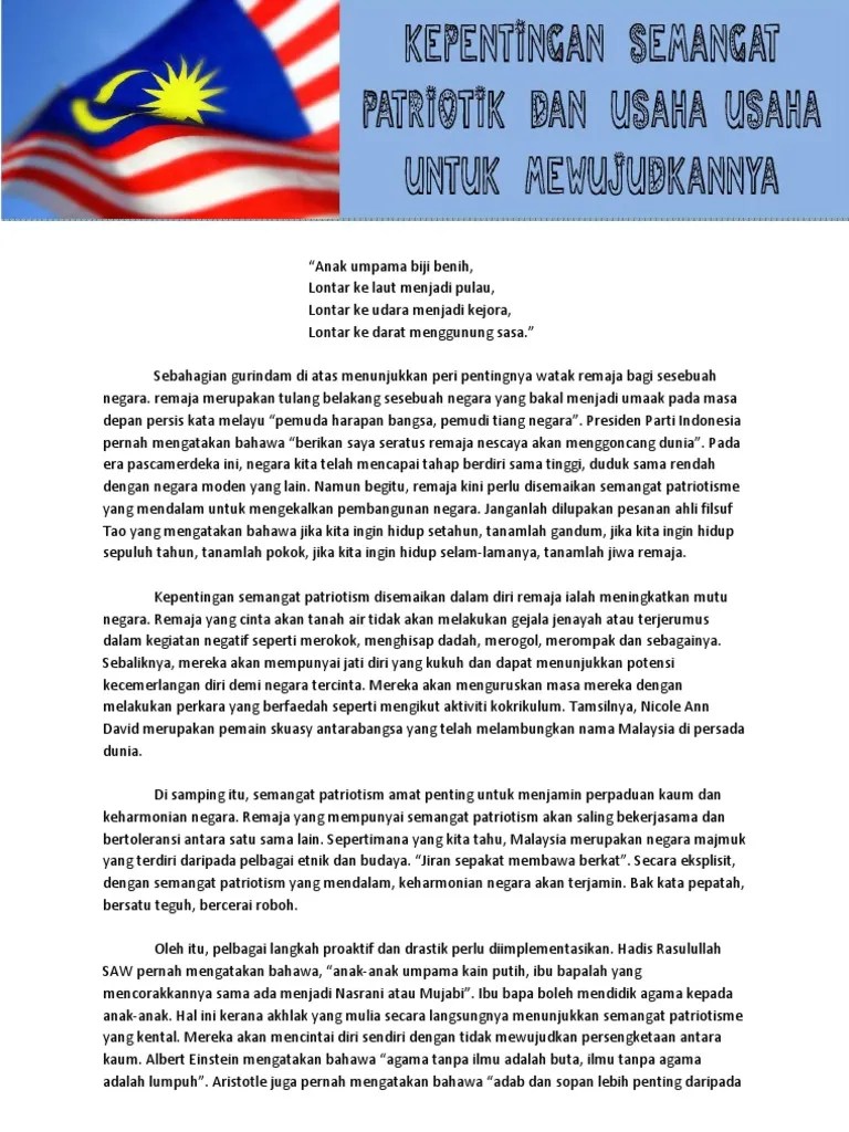 Contoh karangan antara usaha dalam mewujudkan perpaduan dan semangat.